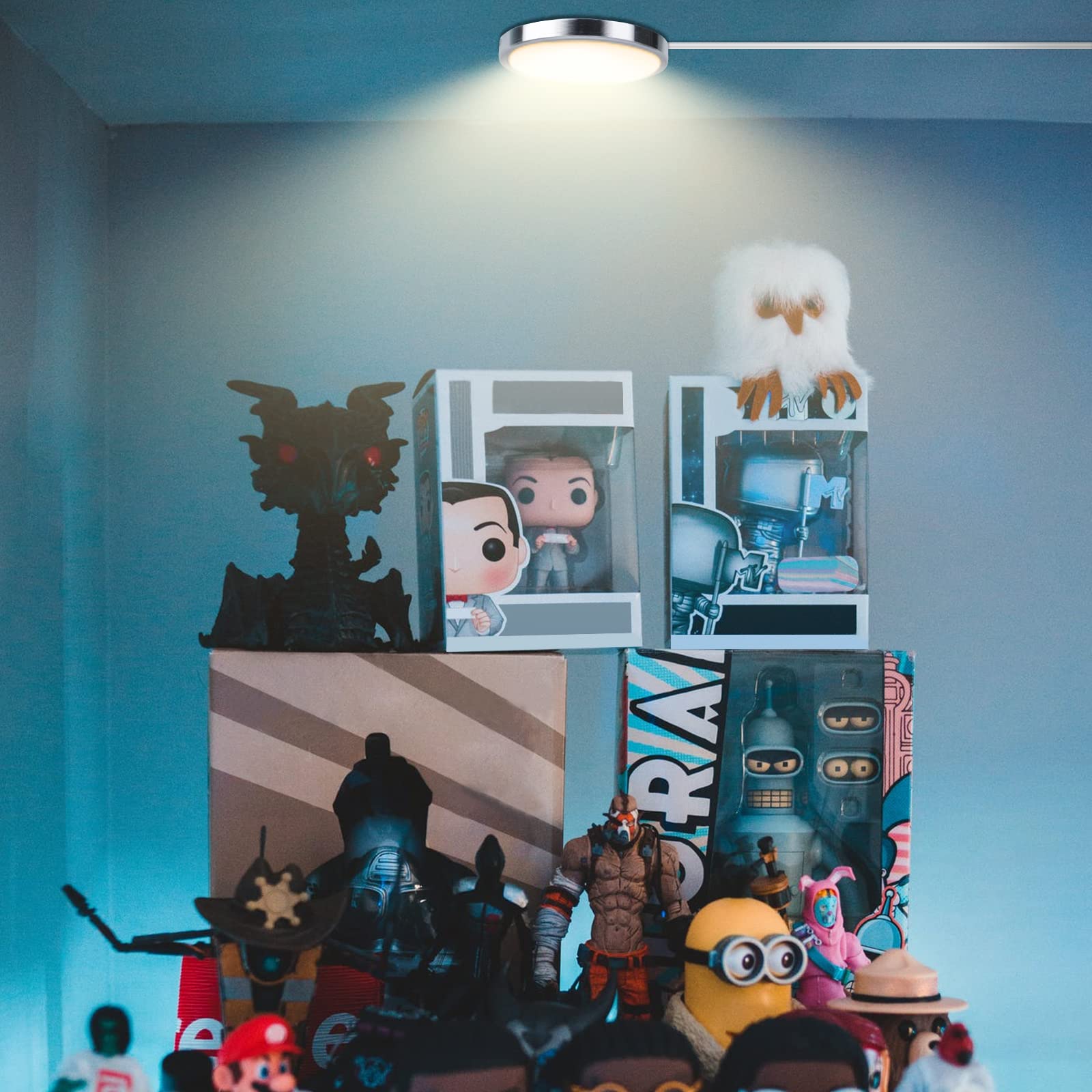 12V Under Cabinet LED Puck Lighting Kit 2 Packs Slim Aluminum Puck Lights,Single Light Plug in Counter Light Fixture for Kitchen Cupboard Bookcase Display Shelf Lighting(Warm White, 2700K)【Soft Light】Compare with traditional fluorescent light, LED light is more energy saving. And LED wired puck lights could provide brilliant illumination for your home about 50,000 hours. 2700 Kelvin warm white are more soft for your eyes. 【High-Quality Materials】The puck lights main made of the aluminum. It has much better durability and heat dissipation than plastic lampshade shell. Enhances service life of the led lights. 【Safe & Energy Efficient】2W Cabinet LED lights is to replace 25W warm white halogen under cabinet puck light, >90% electricity bill saving. No batteries design – US stand wall plug in power adapter with inline On & Off switch, easy plug and play light kit. So that is convenient to use without recharge or change the batteries frequently. 【Easy to Install】The puck light has 2 screws and double adhesivse to installation anywhere of your spaces. Perfect for indoor lighting, like your close cabinet, bedside cabinet, study, showcase, foyer, cupboard and character box. 【Lighting Control】The led puck light are compatible with LABOREDUCER touch dimmer and remote set (sold separately). A remote controller can operating several wireless led lights at the same time.