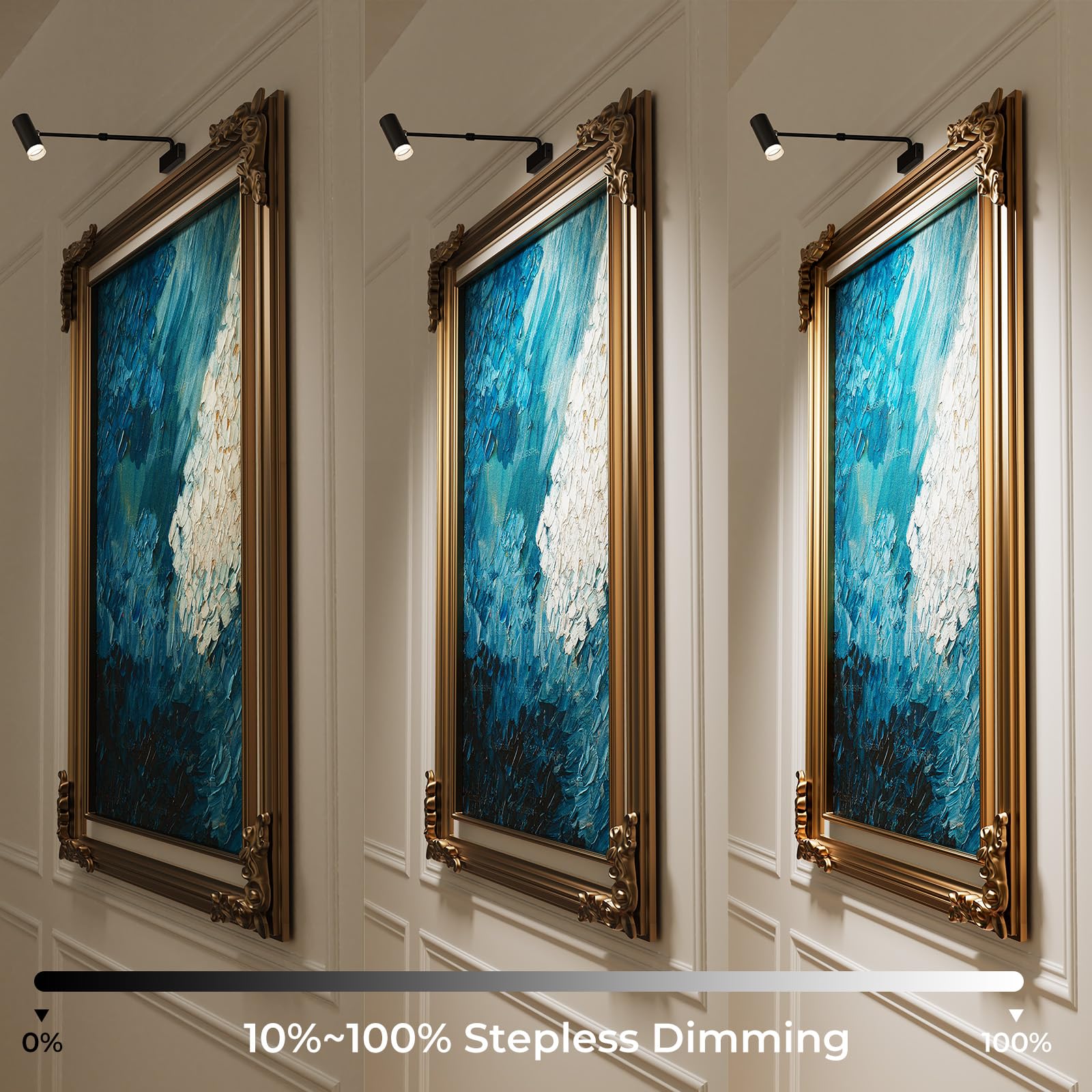 [Remote and Touch Control]: Remote and touch control combined, so you can easily control the painting light by your need. The gallery light can adjust 3CCT color temperatures and brightness dimming. It also has memory and timing functions. Let you enjoy the convenience of technology while appreciating the decorations.