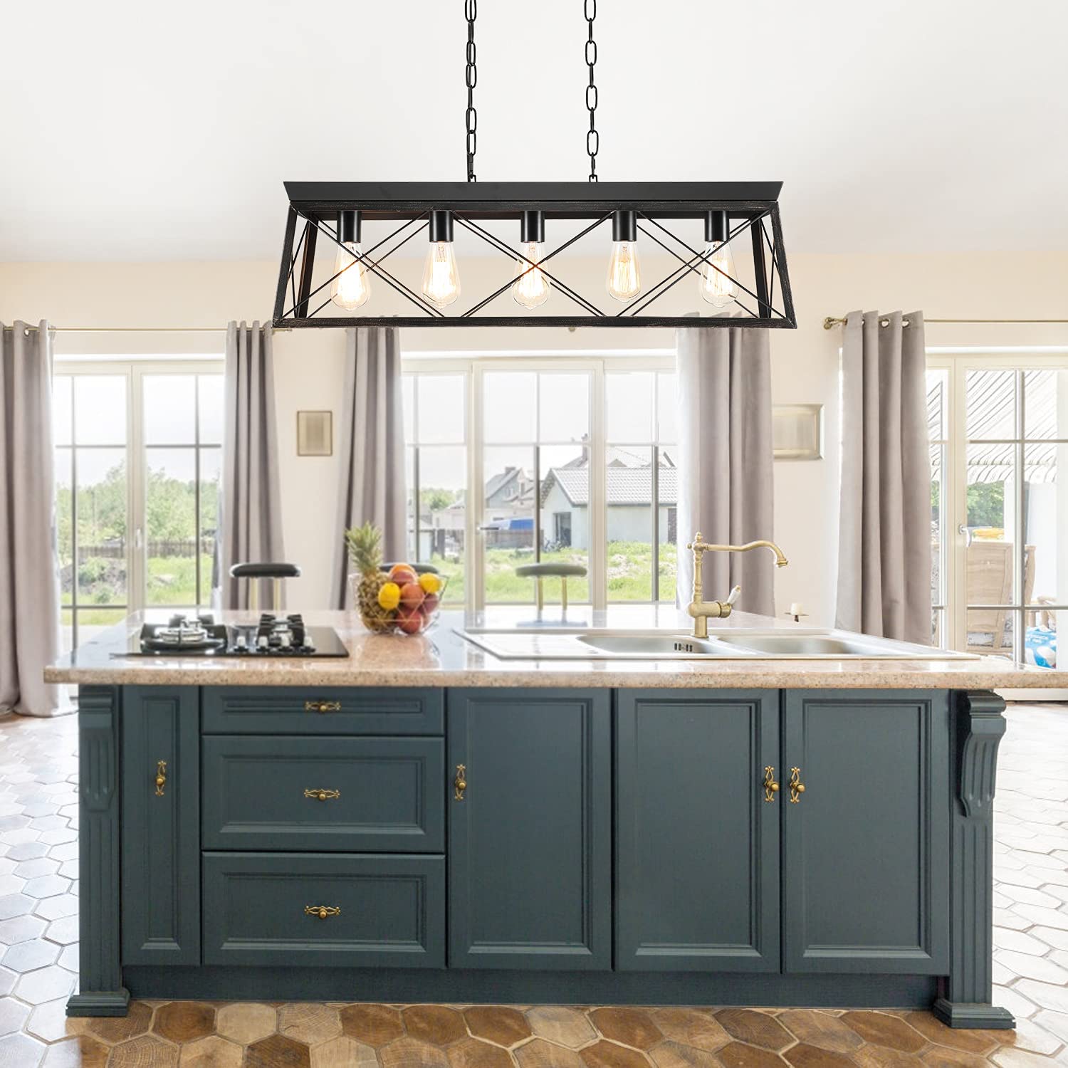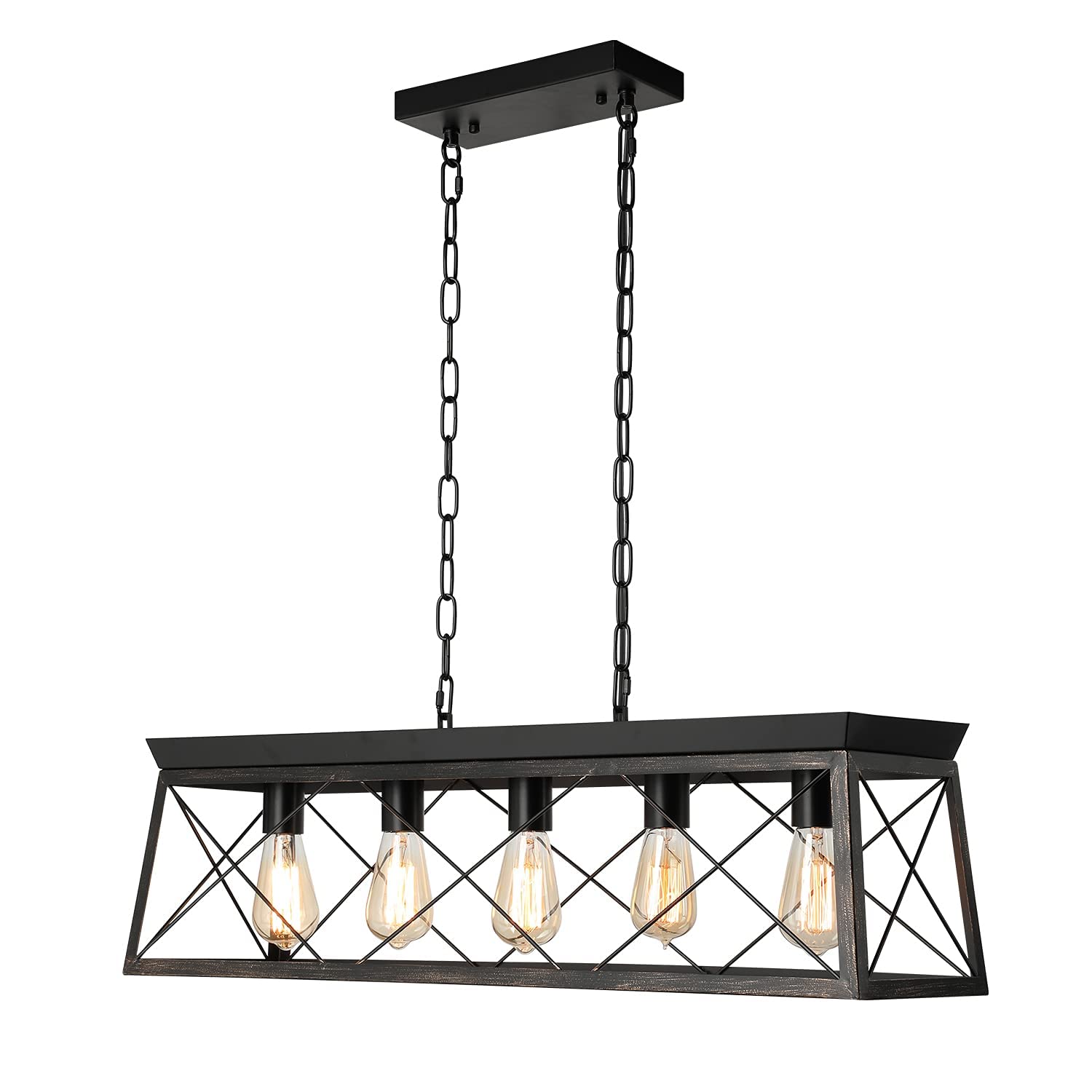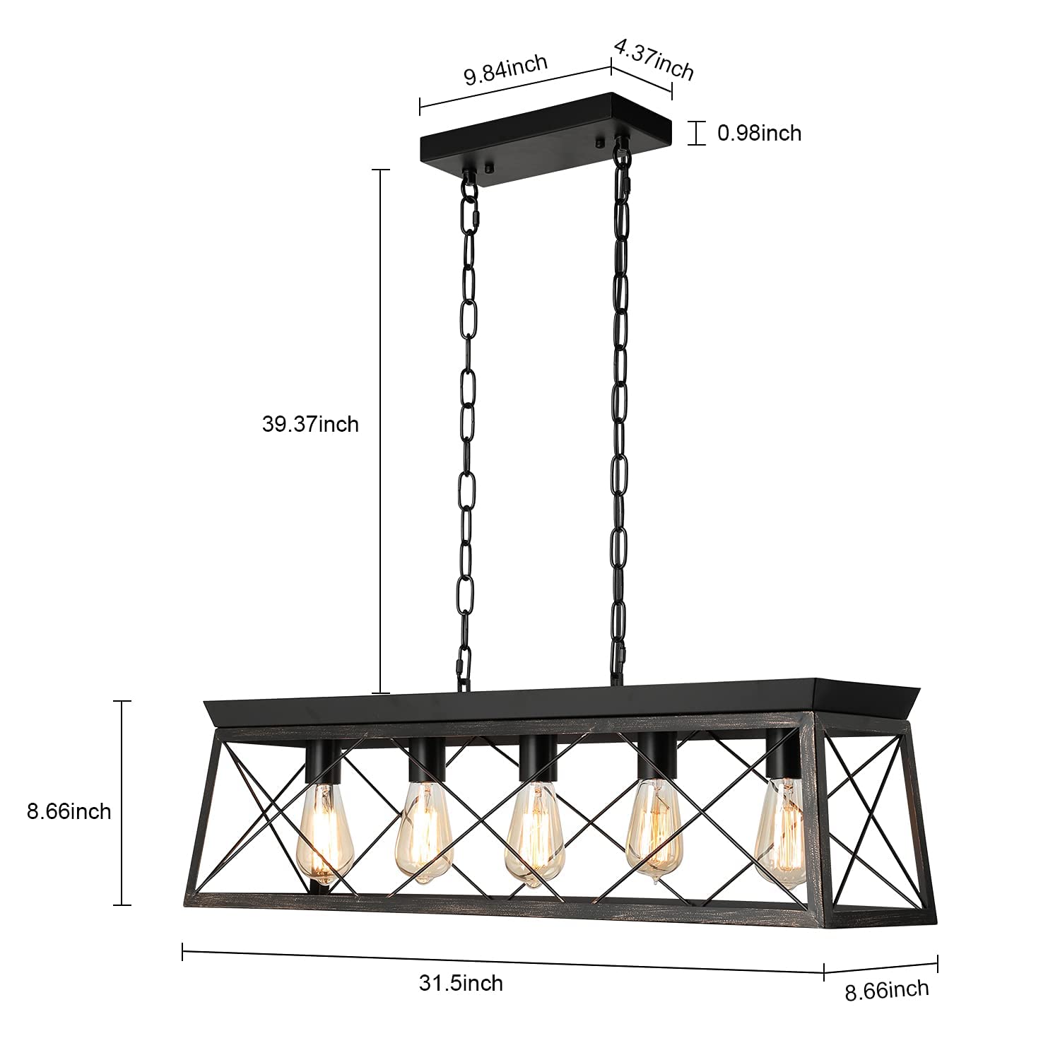 Measures of 31.5 x 8.66 x 8.66 in; equipped with adjustable chains, the kitchen pendant light can be customized to fit your space, allowing for a height adjustment as needed.