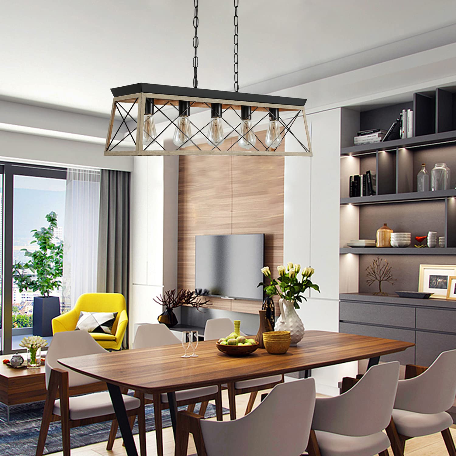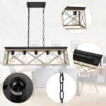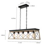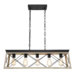 Dining Room Light Fixture,5-Light Chandelier for Island Light,Black and Oak FinishKitchen Lighting Hanging Pendant Light Kitchen Island,Industrial Island Lights for Kitchen Dining Room