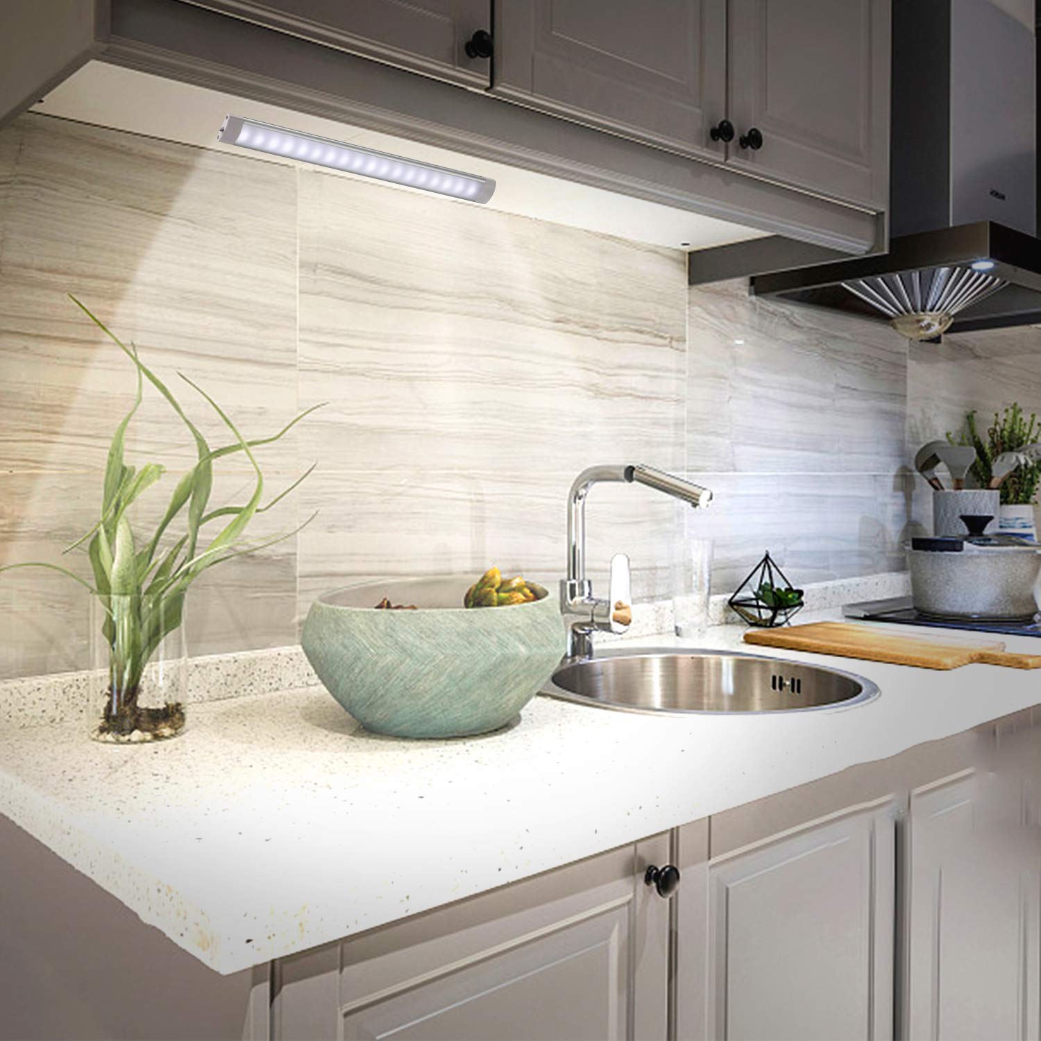 Professional Light: 4000K Natural white, the best color temperature for reading, working, etc., CRI is 85+, light of this cabinet lighting looks more natural and do no harm for your eyes.