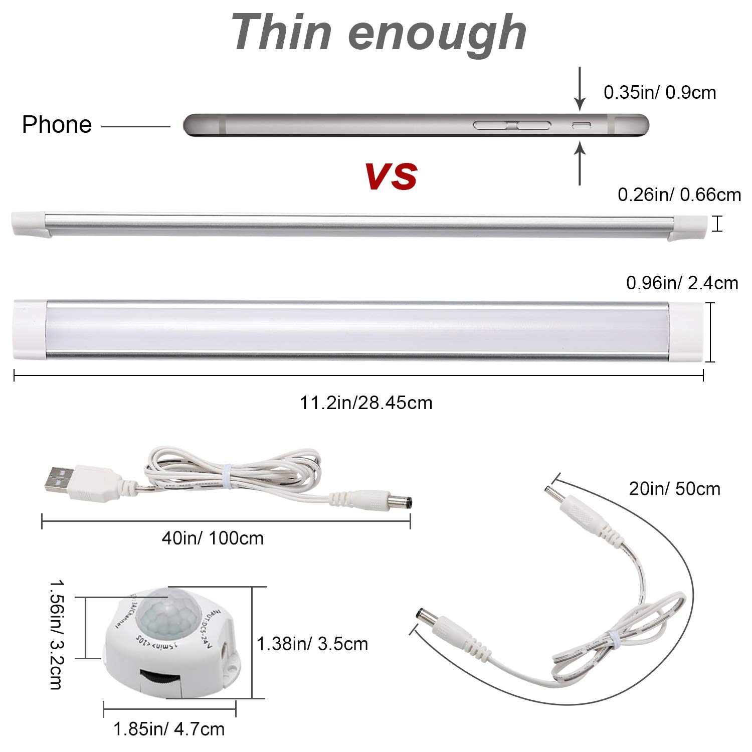 USB Powered: Designed with USB low voltage power support, the motion sensor cabinet lights are very safe to use. It can connect power plug, power bank and PC for using, no need to charge again and again.
