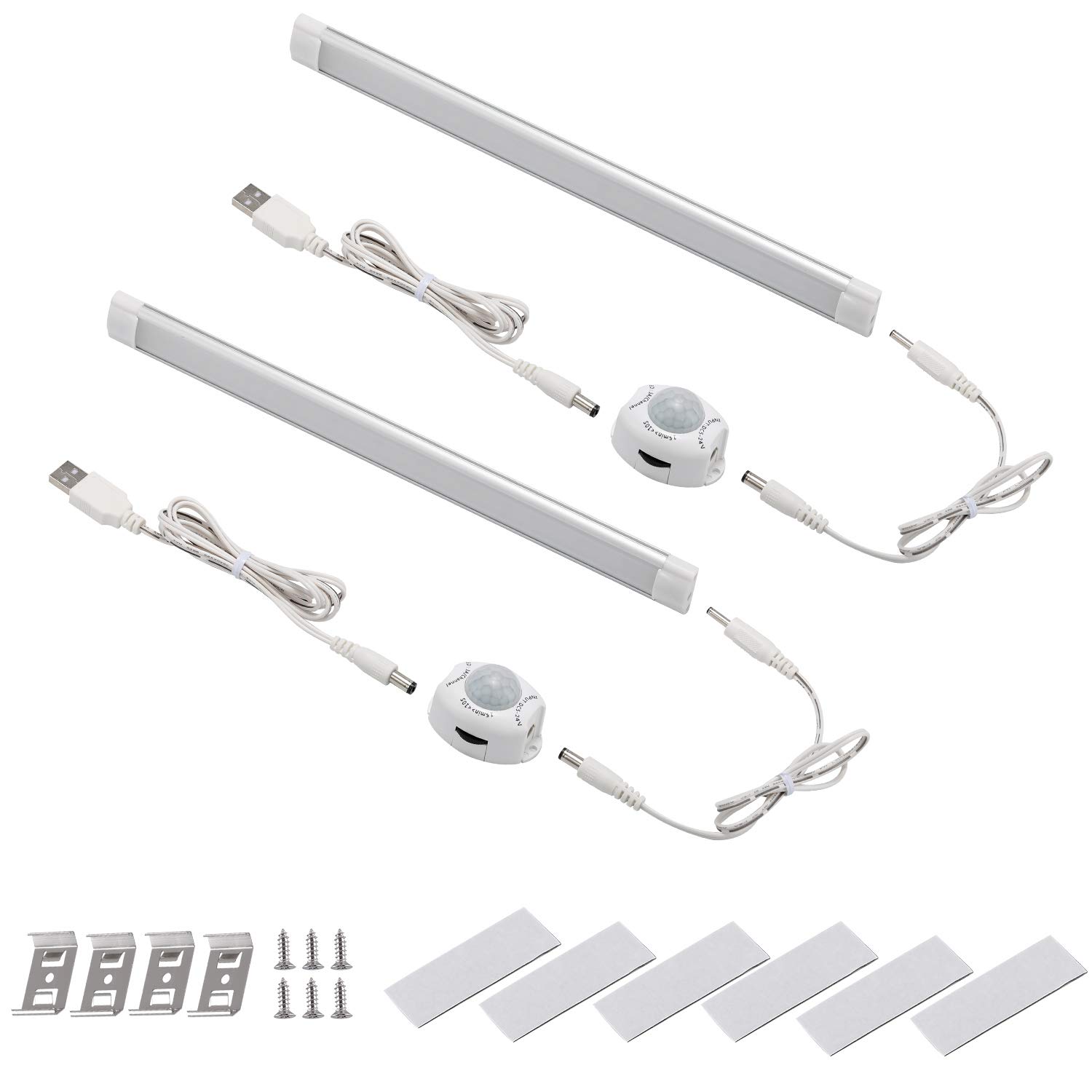 LABOREDUCER LED Under Cabinet Lighting Fixture,Motion Sensor Activated Bar Light for Kitchen Garage Closet Bedside,2 Pack 11.2 inch Night Light with Automatic Shut Off Timer USB Port (Natural White)