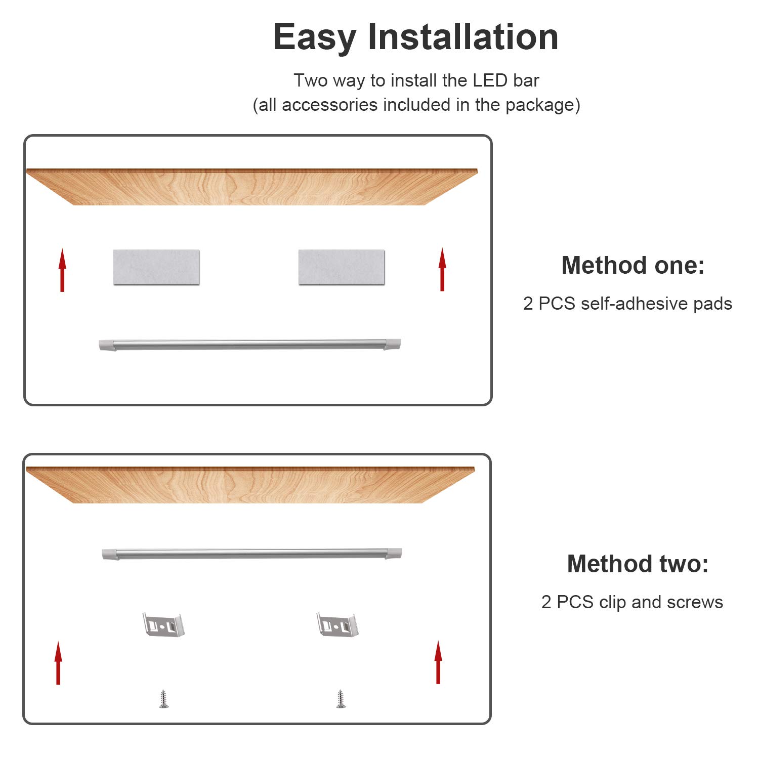 Easy Installation: the cabinet light can be installed by screws and bracket, can also be installed by stickers, just stick on, not harm to your furniture. Wire clips are included to keep a neat impression, no worries about messing cords.