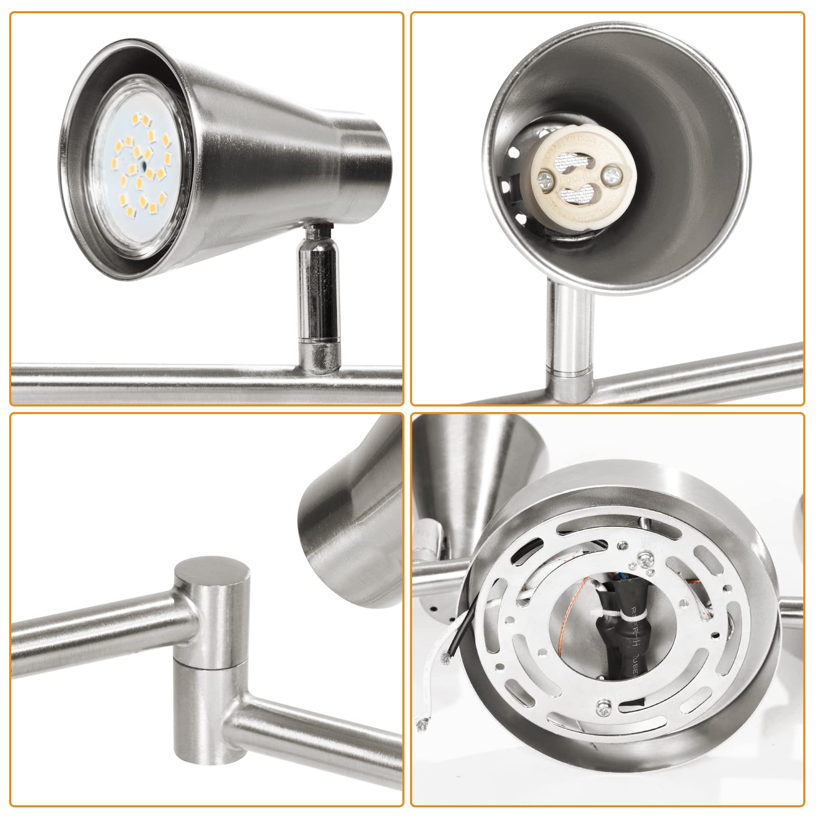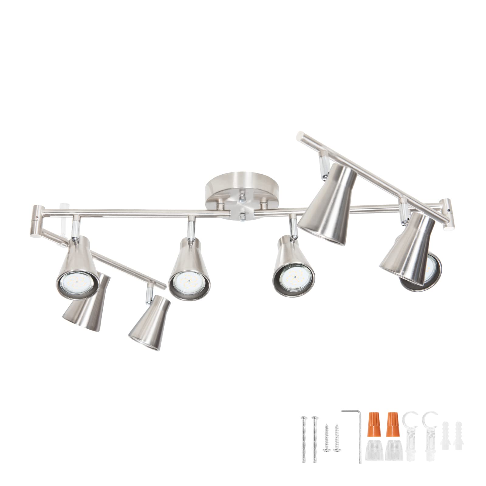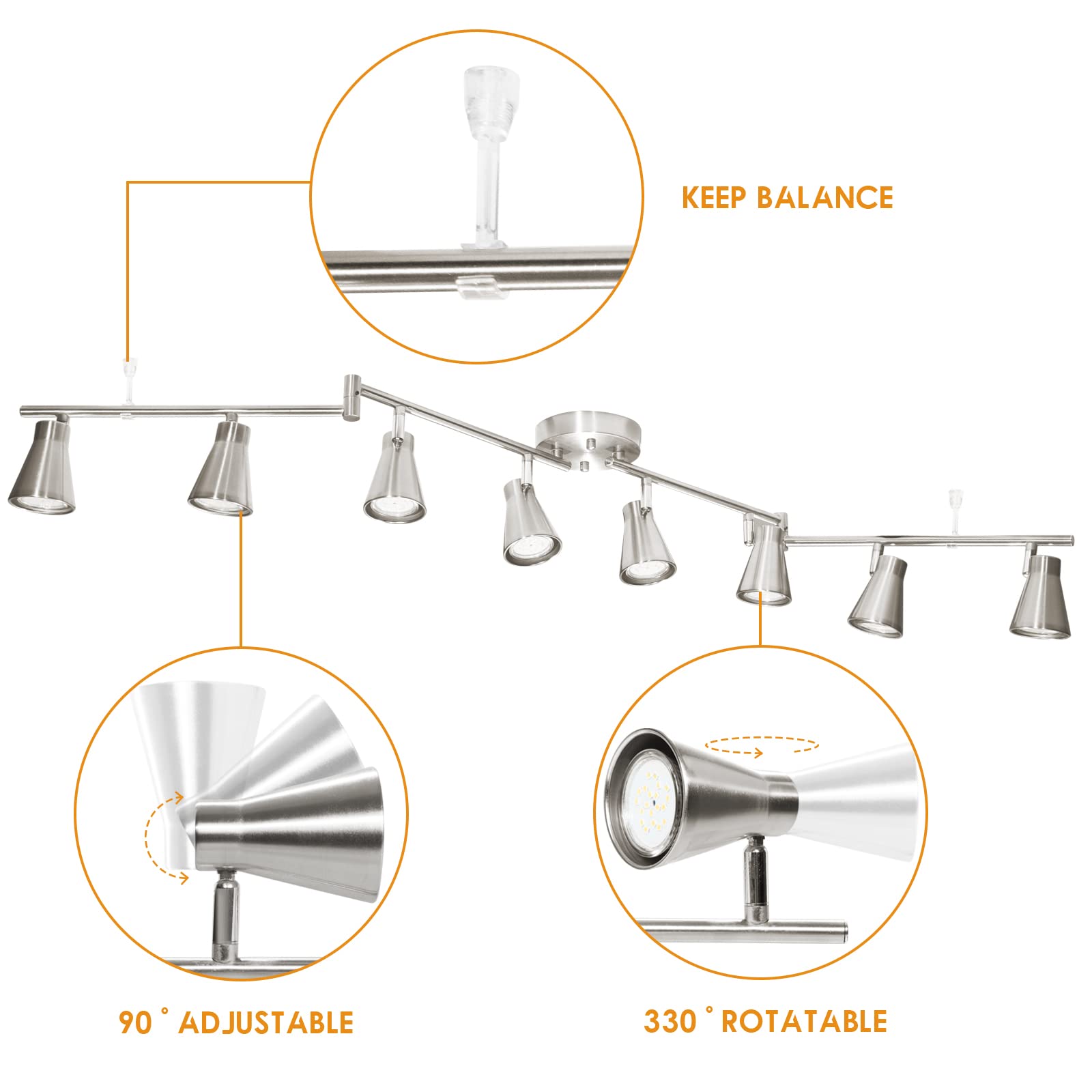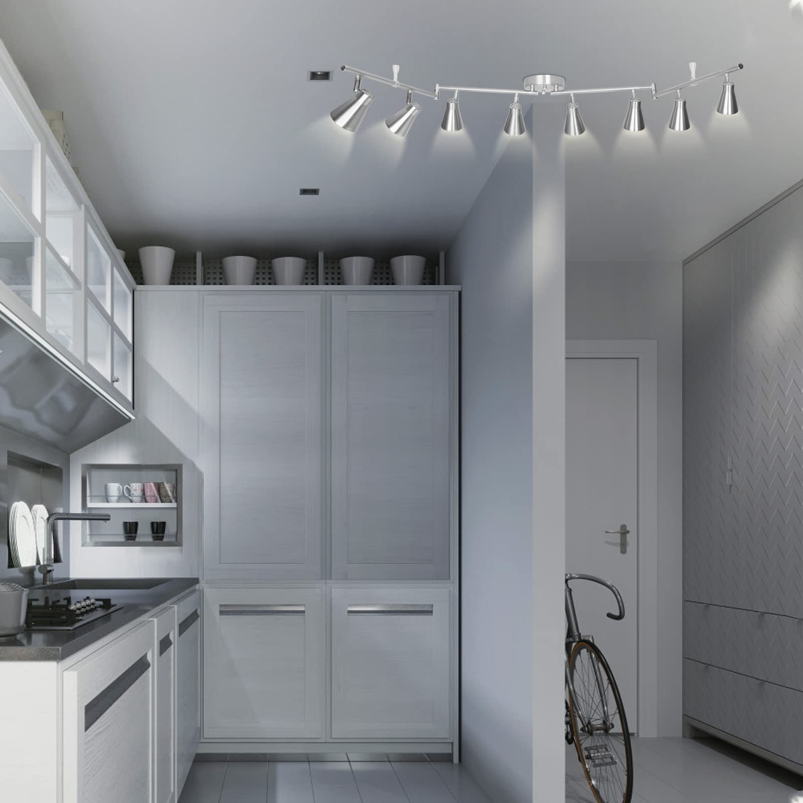 The track lighting fixture, design with 8 individual light heads which can pivot rotate 330° and vertical adjustable 90°. You can angle the light for the best placement in the entire area.