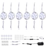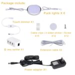 LED Under Cabinet Lighting Kit,6 Pack Linkable Puck Lights with Touch Dimmer,Wired Plug in Under Counter Lighting for Curio Bar, Kitchen, Cupboard,Bookcase,Closet Furniture (6000K Daywhite)