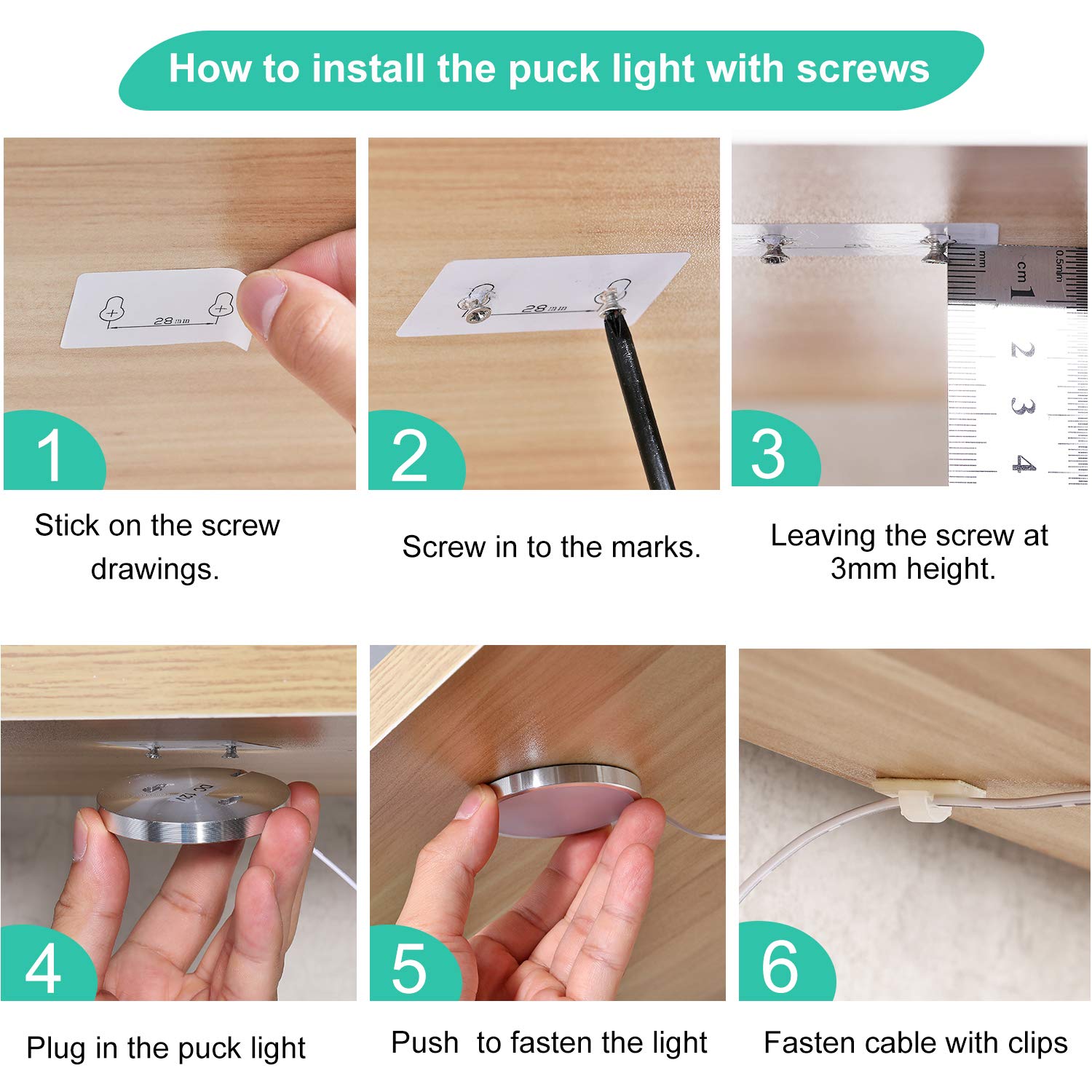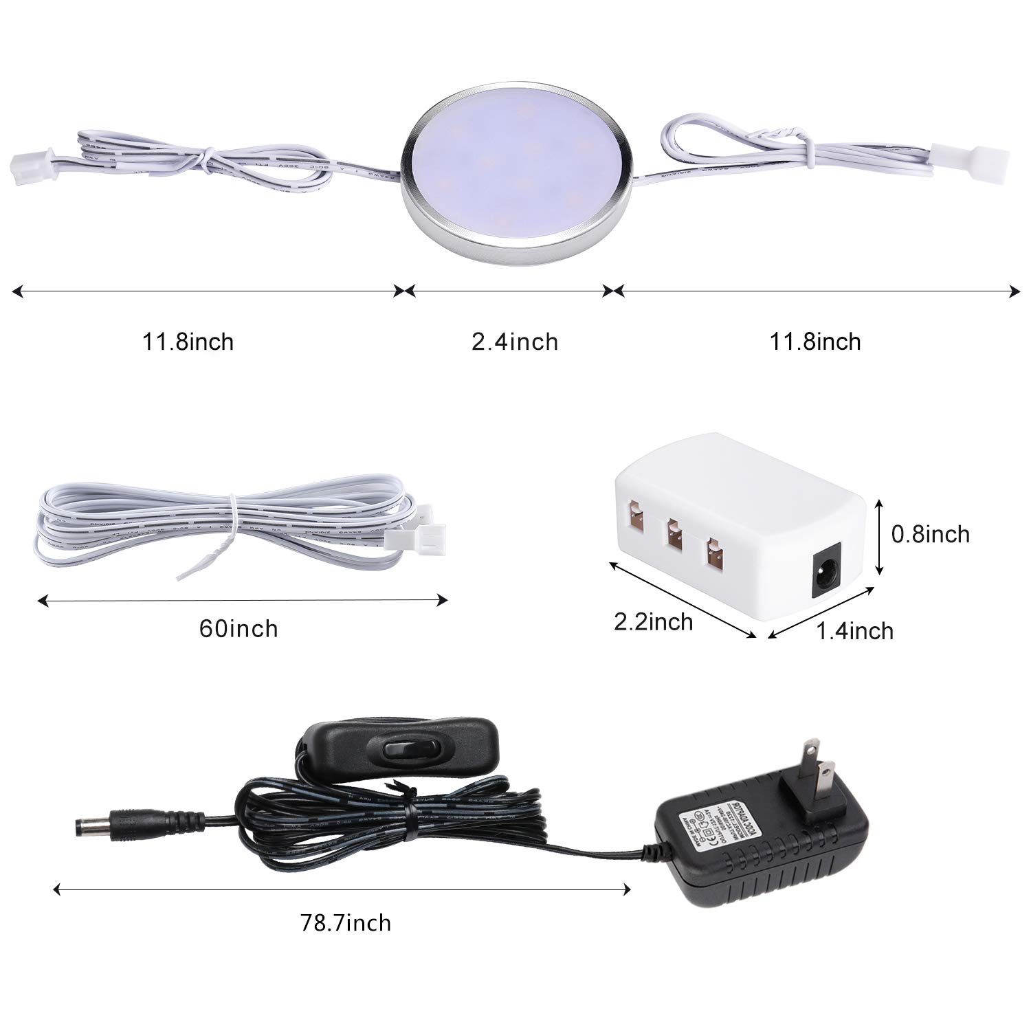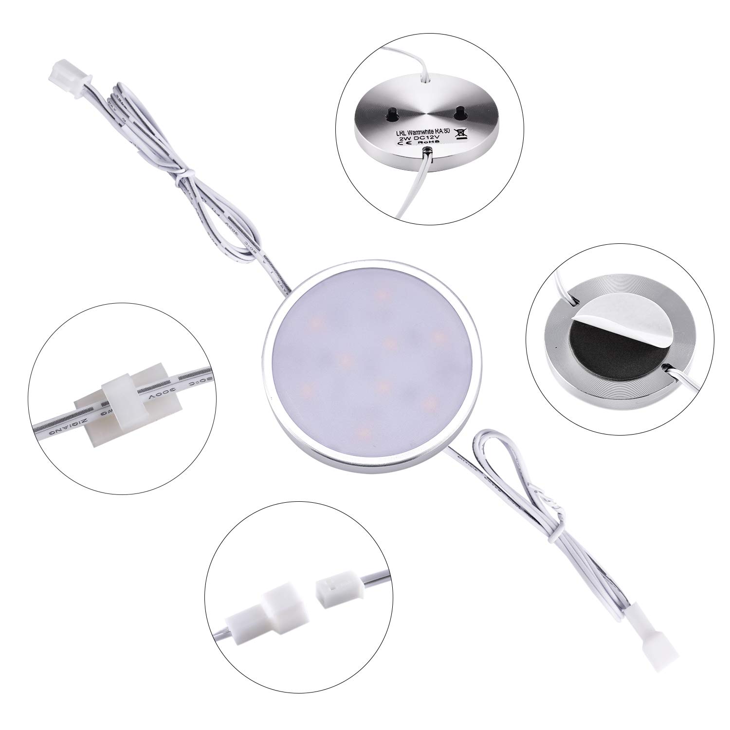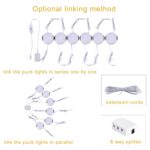 Ultra Slim: With the 0.3inch thickness and 2.4inch diameter, the under cabinet puck lights almost invisible after installation. Leave a clean and neat cabinet.