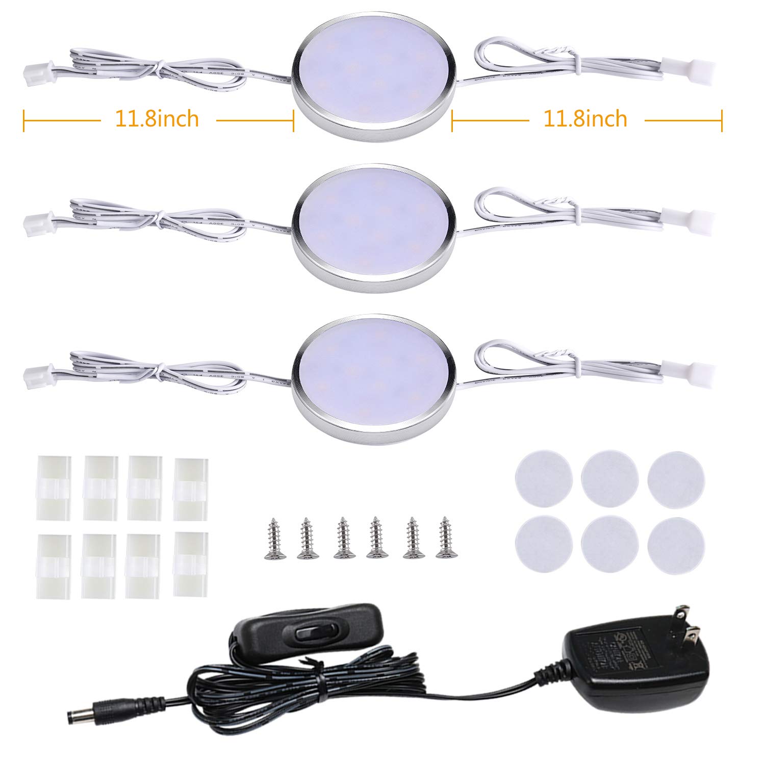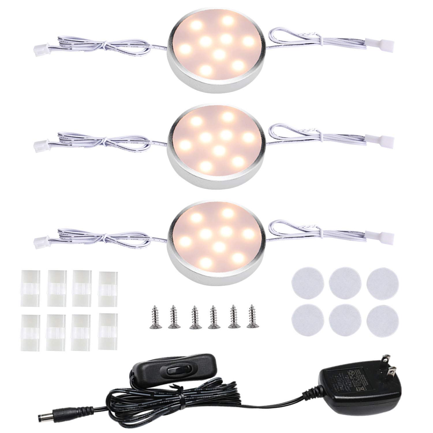 LED Under Counter Lighting Fixture,3 Pack Wired Linkable Under Cabinet Lights for Kitchen,Plug in Puck Lights with Manual Switch for Wardrobe Closet Showcase Bookcase(2700K Warmwhite)
