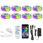 RGB Under Cabinet Lights 8 Pack App Controlled and Music Sync,RGB Puck Light with Remote,Plug in or Hardwired Under Counter Lights with Multi Color for Kitchen Shelf Cupboard Showcase 12V