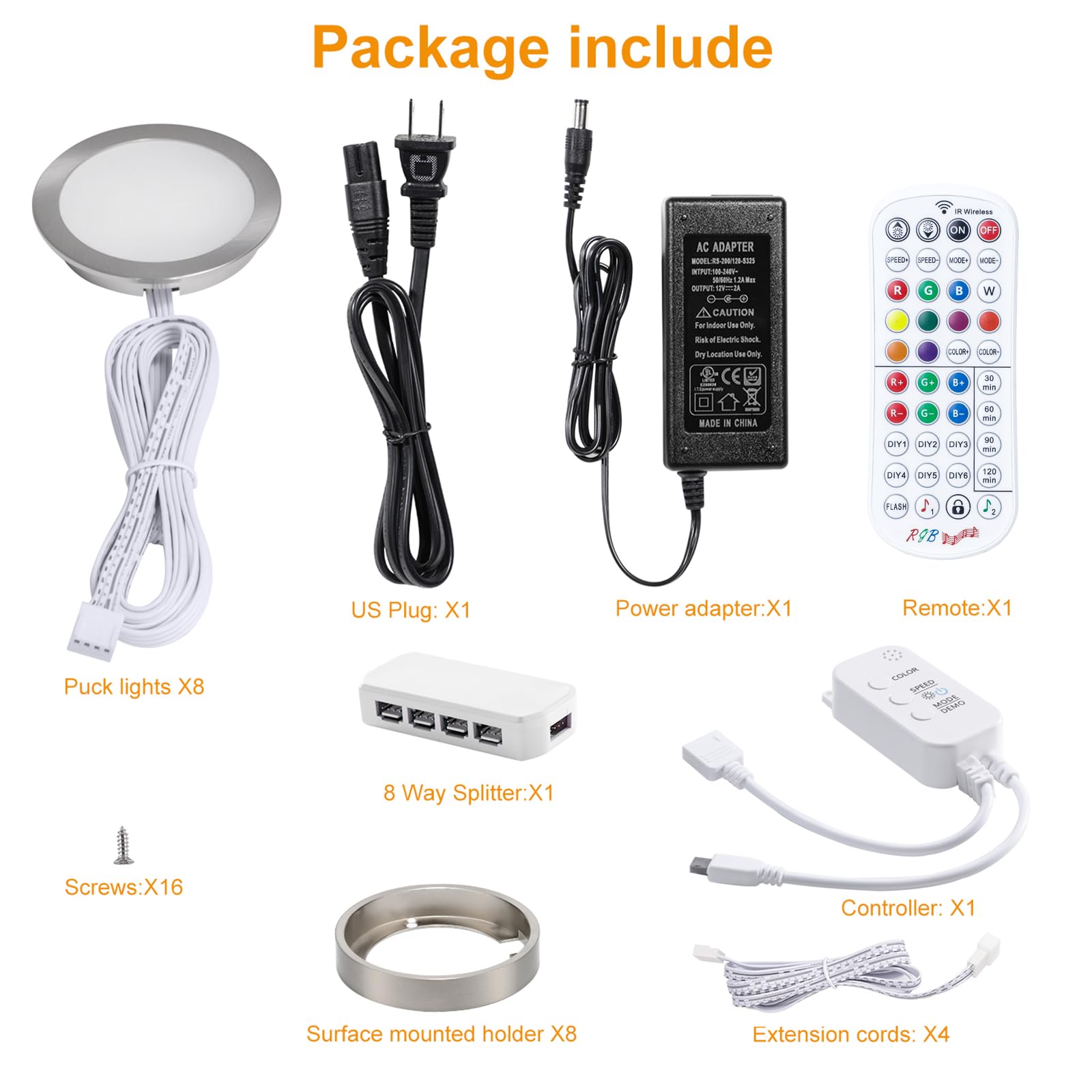 Music Sync – This under counter RGB puck lights can show 16 Million Colors and you can adjust Red, Green, Blue separately. Built-in unique IC chips, lights will dance with any music types and lighting along with the beat.