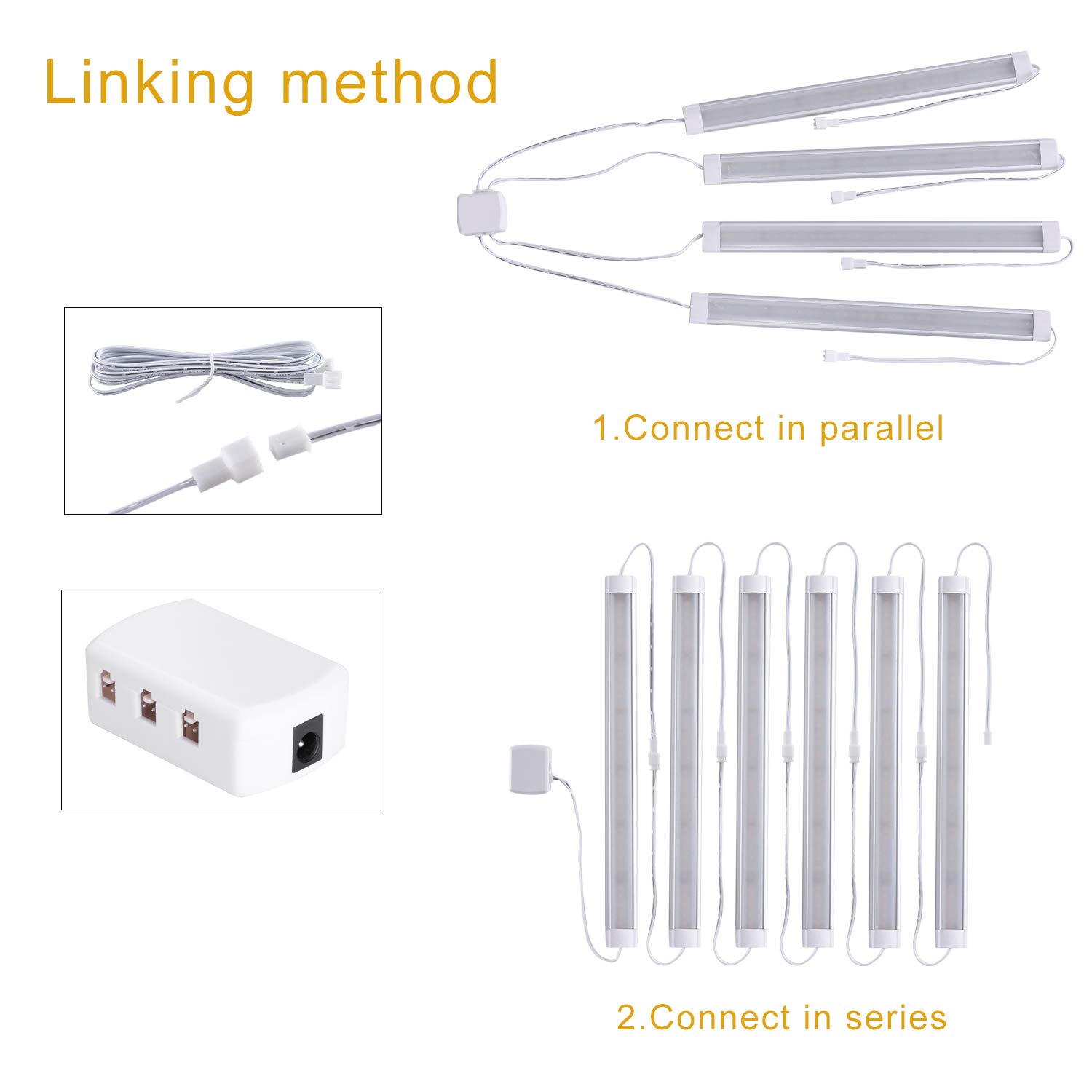 Easy Installation and Extendable–Plug & Play.From there it is simply a matter of connecting the under cabinet lights together and plugging them in.The unit is slim enough to be discreet once installed.Sufficient self-adhesive pads, mounting clips, wire clips, extension cords will help you to install this under counter lights quickly and easily.Easily installed with two mounting methods: 3M tape or screws (included).